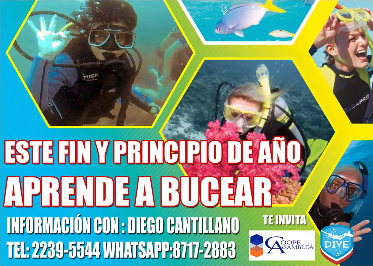 Servicios de Educación de BuceoContacto: Luis Diego Cantillano Delgadoinfo@dive-cr.comTeléfono: 2239-5544Celular: 8717-2883Ubicación: HerediaDescuento: 5%
